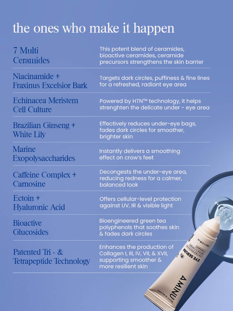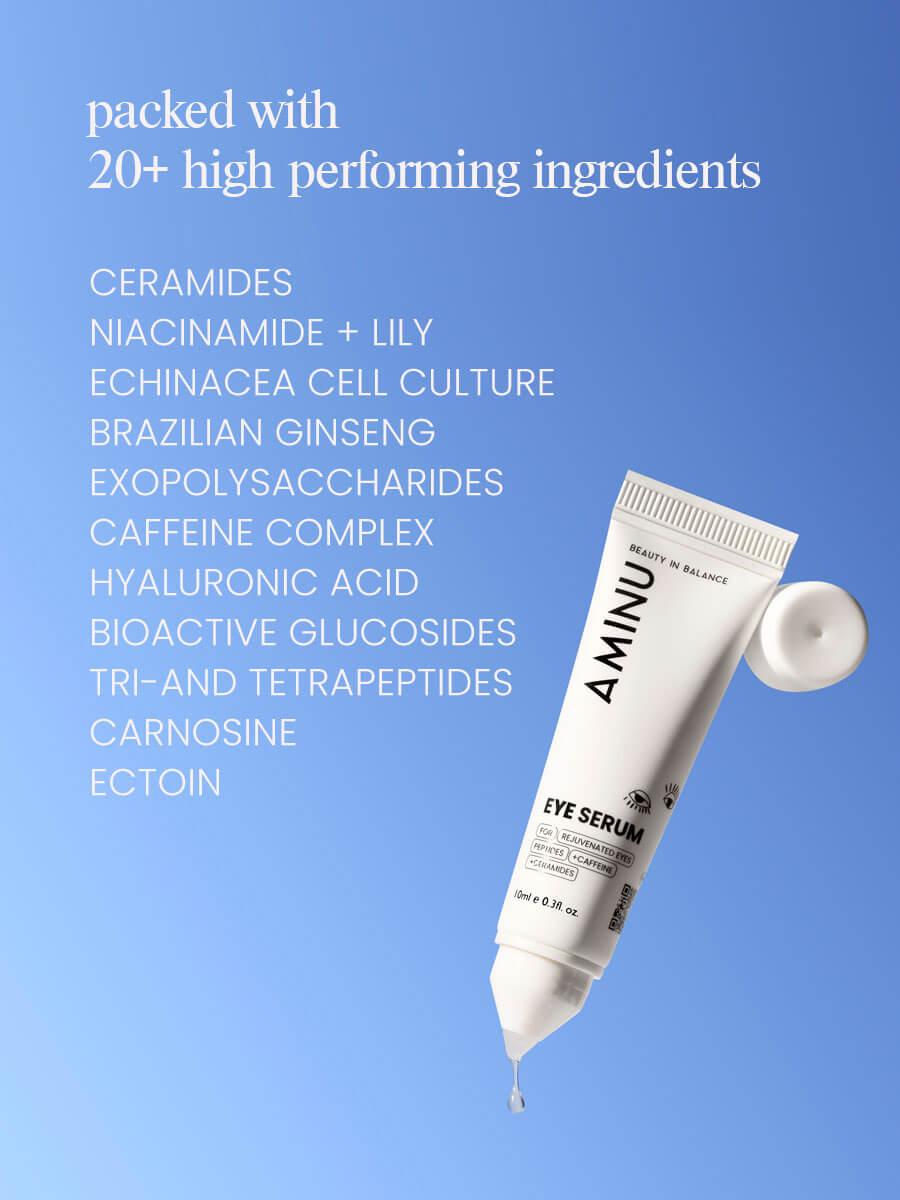 The delicate skin around your eyes is the first to show signs of fatigue, stress, and aging. With that in mind, our multi-benefit eye serum provides targeted care right where you need it most, fortifying your eyes with the goodness of ceramides, peptides, caffeine, ectoin, and more.