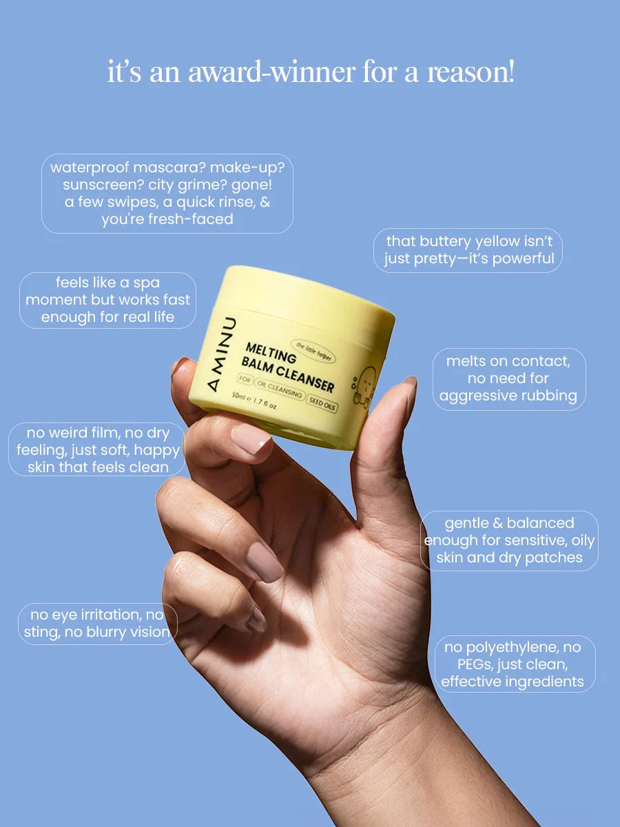 Three-Phase Cleanse: Starts as a butter-soft balm → melts into silky oil → turns into a light milk, and rinses off completely