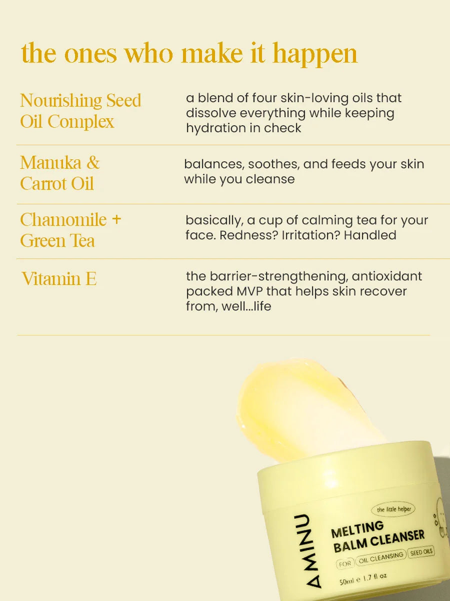 Makeup, sunscreen, and pollution create oxidative stress. This antioxidant-rich oil neutralizes that stress while the balm lifts it all away, so your skin feels refreshed.